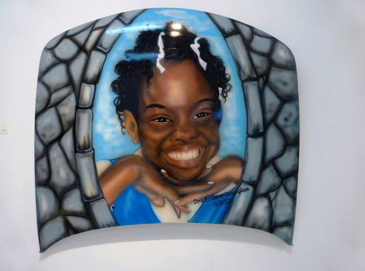 Cleaver Cunningham paints memorial murals largely using airbrush. The portraits often include images of status objects owned or desired by the subjects of the murals. See more of Cleaver here: https://vimeo.com/99861077